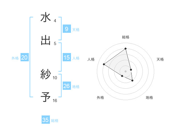 水出 紗予さんの総格は35画の4点!