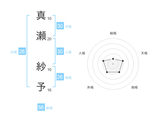 真瀬 紗予さんを姓名の画数から五運を鑑定