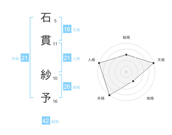 石貫 紗予さんの天格は16画の5点!