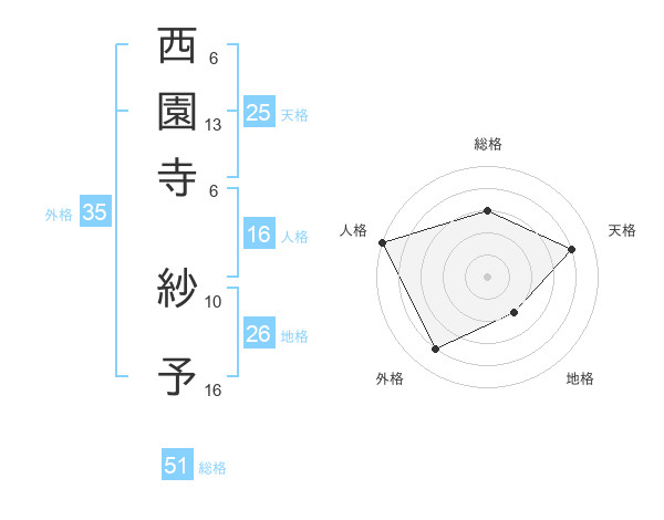 西園寺 紗予さんを姓名の画数から五運を鑑定