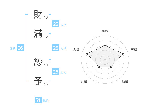 財満 紗予さんの天格は25画の4点!