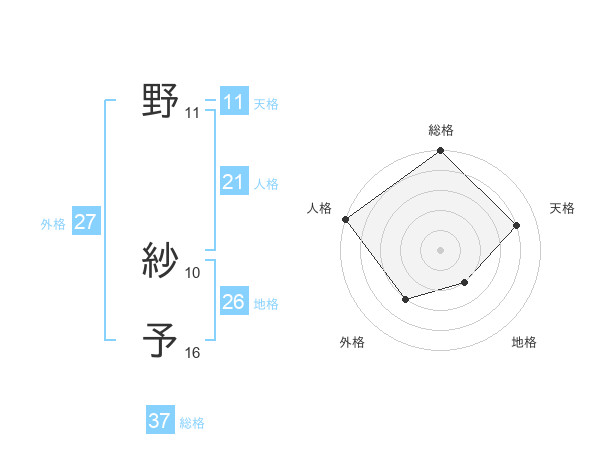 野 紗予さんの総格は37画の5点!