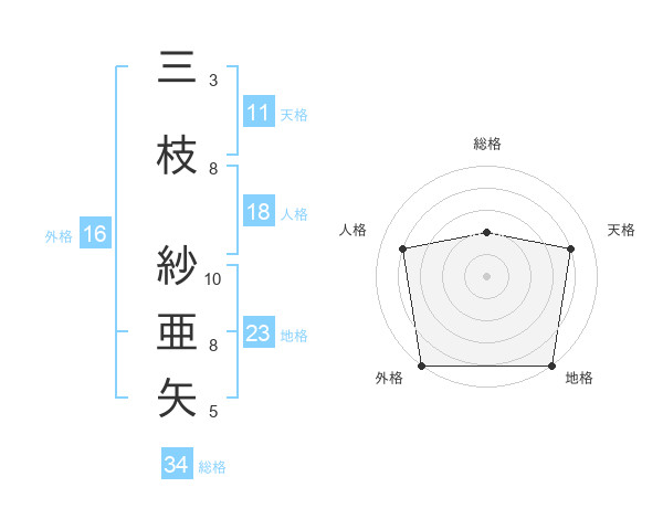 三枝 紗亜矢さんの総格は34画の2点!