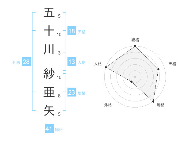 五十川 紗亜矢さんを姓名の画数から五運を鑑定