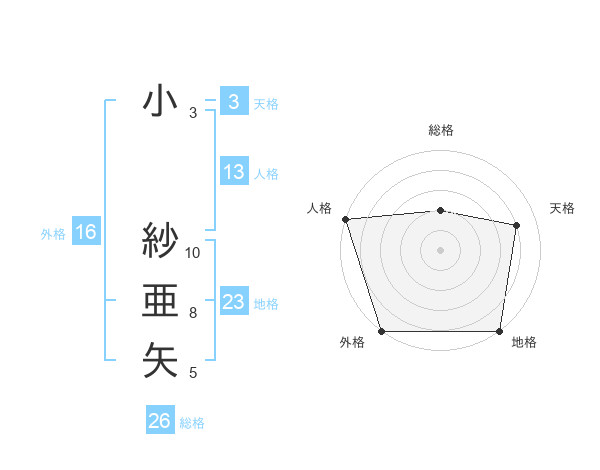 小 紗亜矢さんを姓名の画数から五運を鑑定