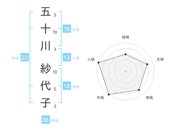 五十川 紗代子さんの天格は18画の4点!