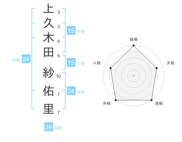 上久木田 紗佑里さんの総格は39画の5点