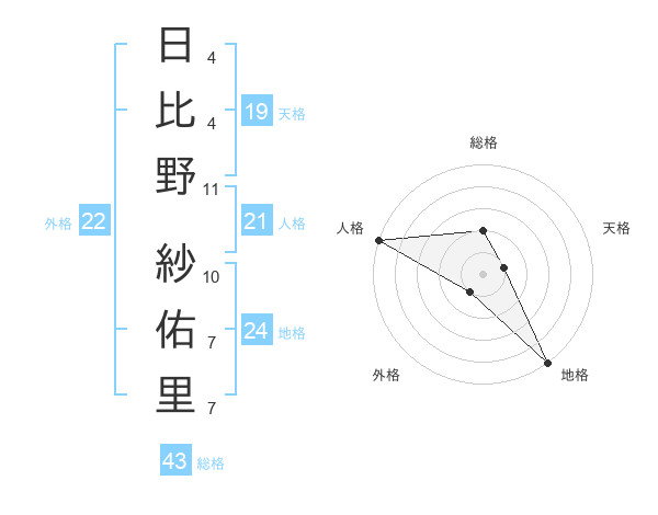 日比野 紗佑里さんの総格は43画の2点!