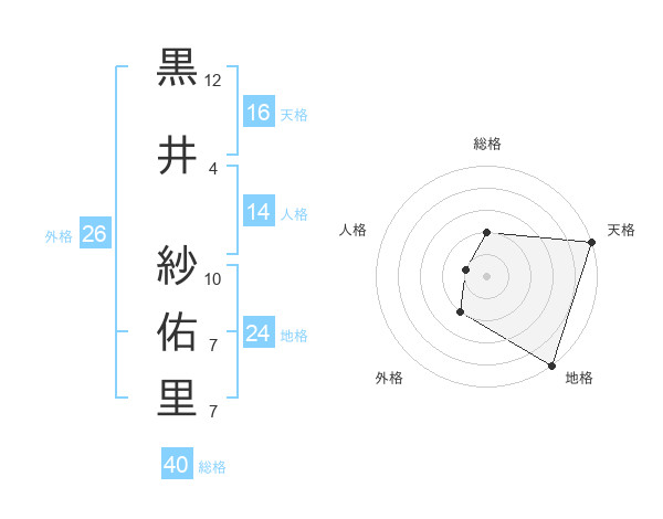 黒井 紗佑里さんを姓名の画数から五運を鑑定