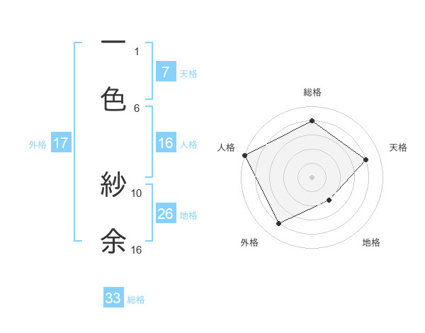 一色 紗余さんの外格は17画の4点