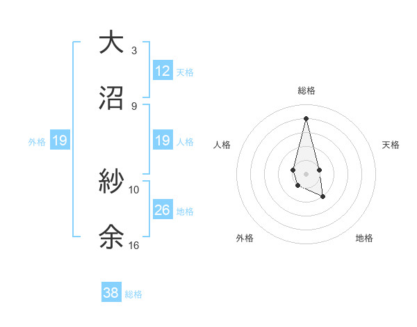 大沼 紗余さんを姓名の画数から五運を鑑定