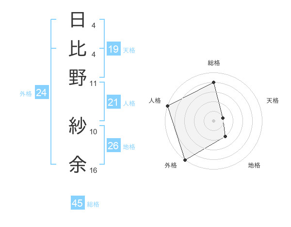 日比野 紗余さんを姓名の画数から五運を鑑定