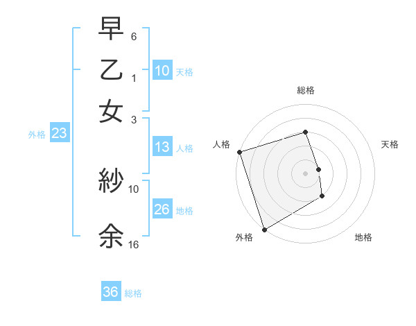 早乙女 紗余さんを姓名の画数から五運を鑑定