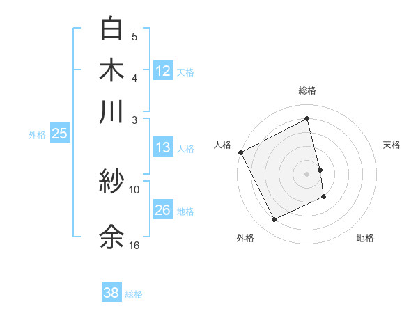 白木川 紗余さんの総格は38画の4点!