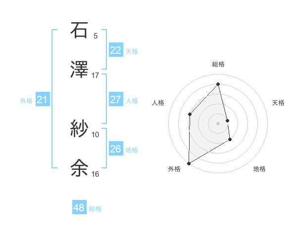 石澤 紗余さんを姓名の画数から五運を鑑定