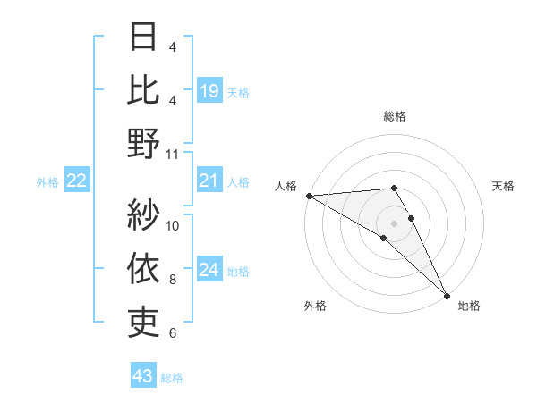 日比野 紗依吏さんを姓名の画数から五運を鑑定