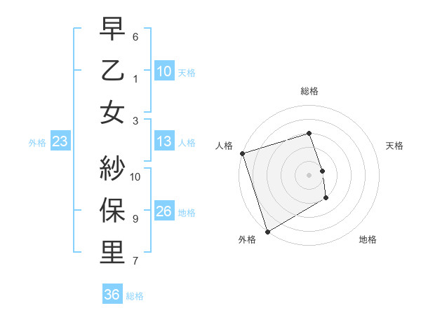 早乙女 紗保里さんを姓名の画数から五運を鑑定