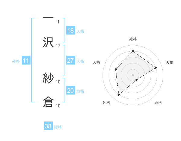 一沢 紗倉さんを姓名の画数から五運を鑑定