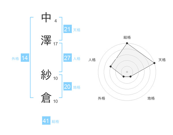 中澤 紗倉さんを姓名の画数から五運を鑑定