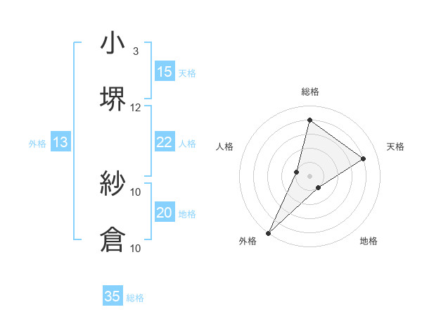 小堺 紗倉さんの外格は13画の5点!