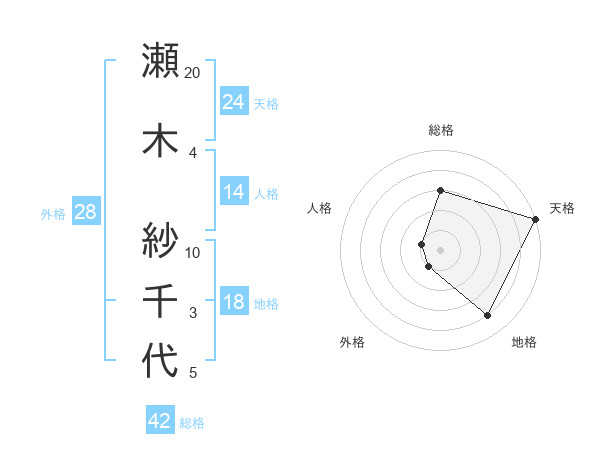 瀬木 紗千代さんの天格は24画の5点!