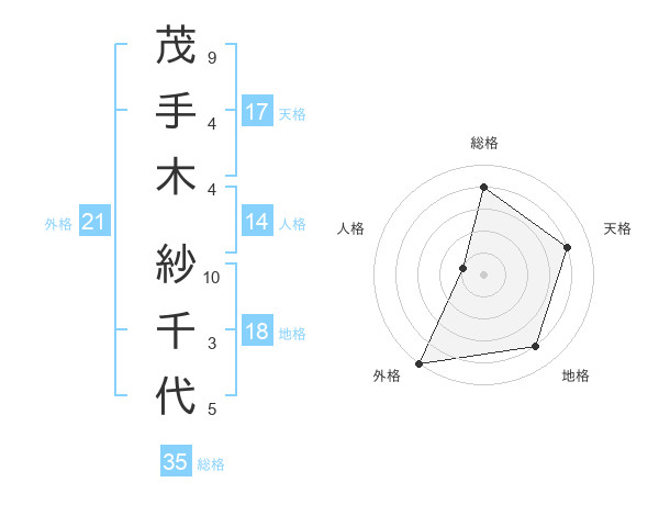茂手木 紗千代さんを姓名の画数から五運を鑑定
