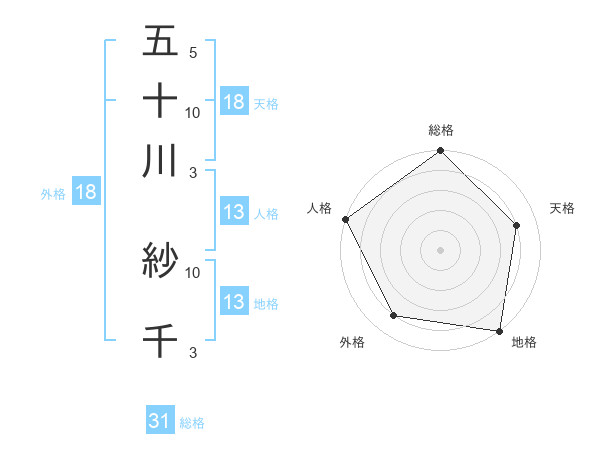 五十川 紗千さんを姓名の画数から五運を鑑定