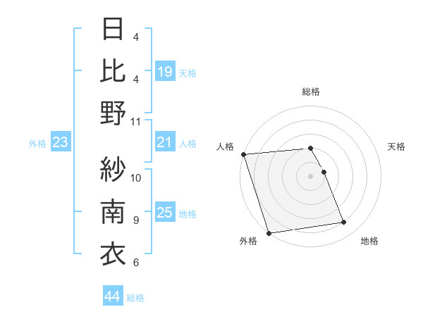 日比野 紗南衣さんの総格は44画の2点!