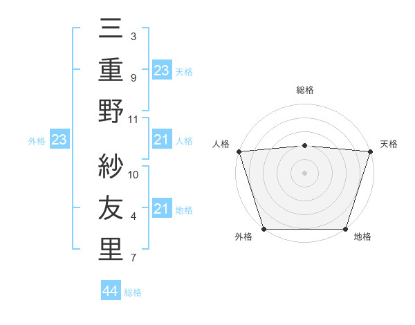 三重野 紗友里さんを姓名の画数から五運を鑑定