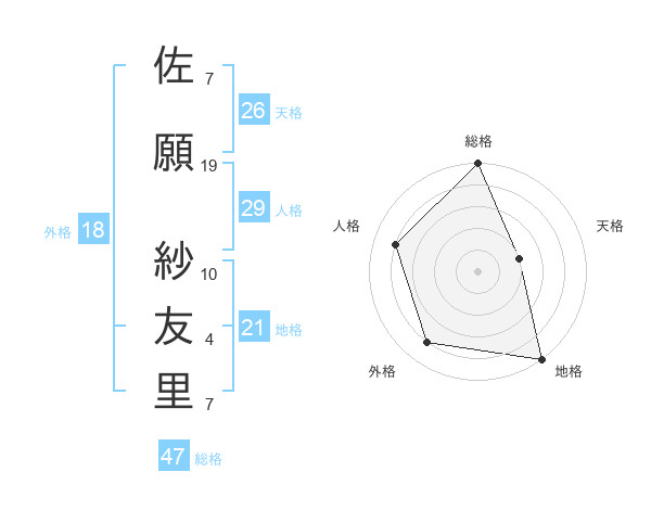 佐願 紗友里さんの総格は47画の5点!