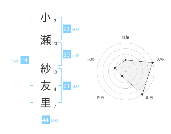 小瀬 紗友里さんを姓名の画数から五運を鑑定