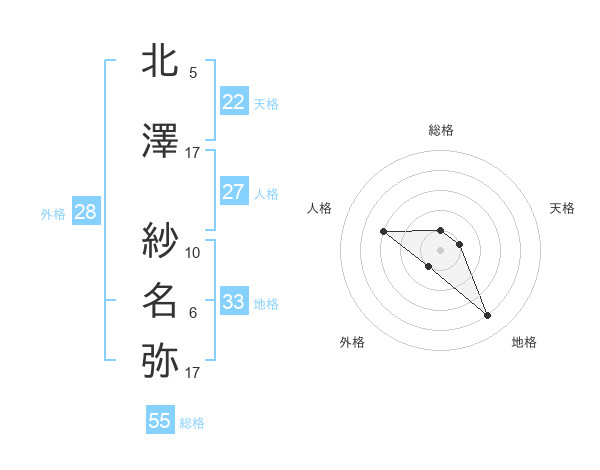 北澤 紗名弥さんを姓名の画数から五運を鑑定