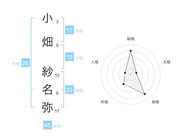小畑 紗名弥さんの総格は45画の4点!
