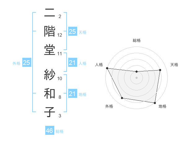 二階堂 紗和子さんを姓名の画数から五運を鑑定