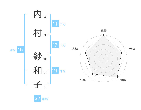 内村 紗和子さんを姓名の画数から五運を鑑定