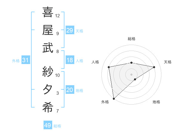喜屋武 紗夕希さんの外格は31画の5点!