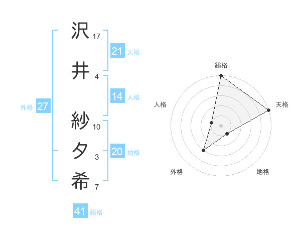 沢井 紗夕希さんを姓名の画数から五運を鑑定
