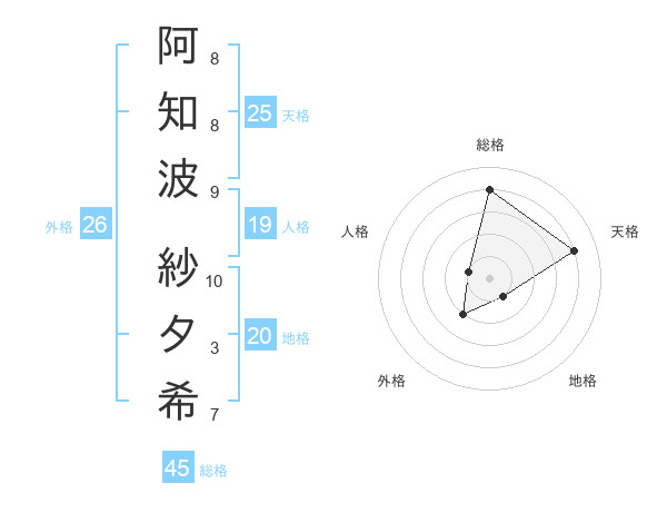 阿知波 紗夕希さんの総格は45画の4点!