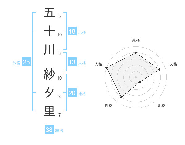 五十川 紗夕里さんを姓名の画数から五運を鑑定