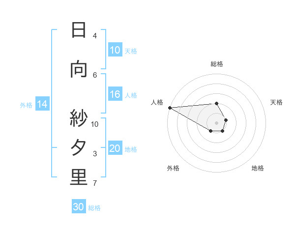 日向 紗夕里さんの総格は30画の2点!