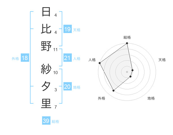 日比野 紗夕里さんの天格は19画の1点!