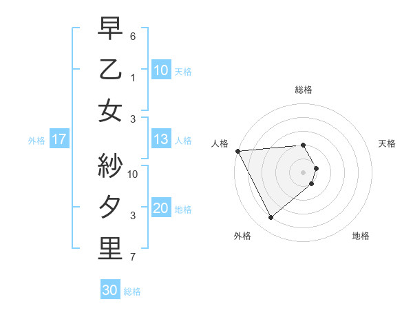 早乙女 紗夕里さんを姓名の画数から五運を鑑定