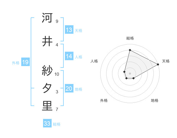 河井 紗夕里さんを姓名の画数から五運を鑑定