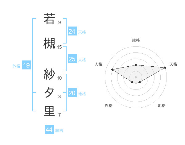 若槻 紗夕里さんの天格は24画の5点!