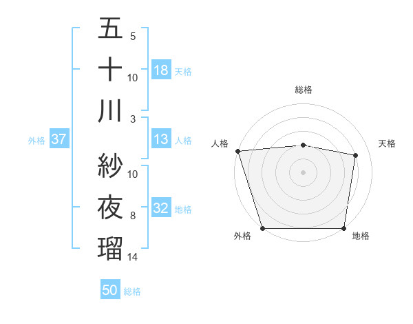 五十川 紗夜瑠さんを姓名の画数から五運を鑑定