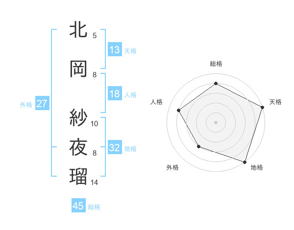 北岡 紗夜瑠さんを姓名の画数から五運を鑑定