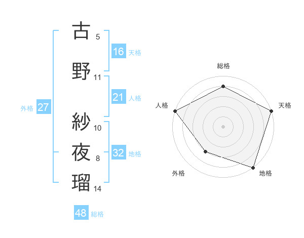 古野 紗夜瑠さんを姓名の画数から五運を鑑定