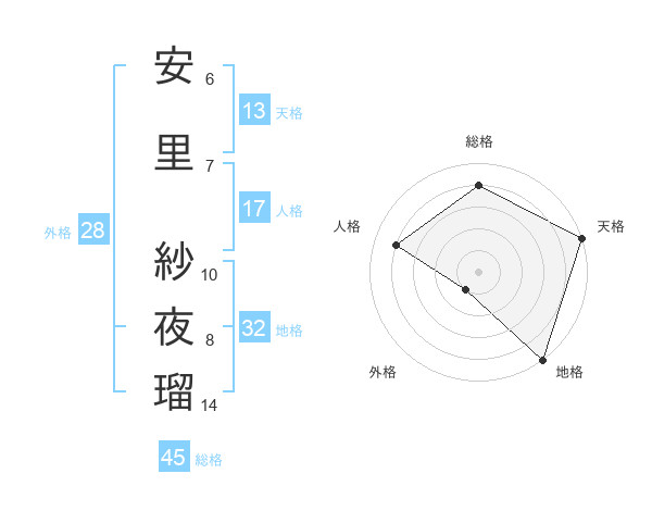 安里 紗夜瑠さんを姓名の画数から五運を鑑定