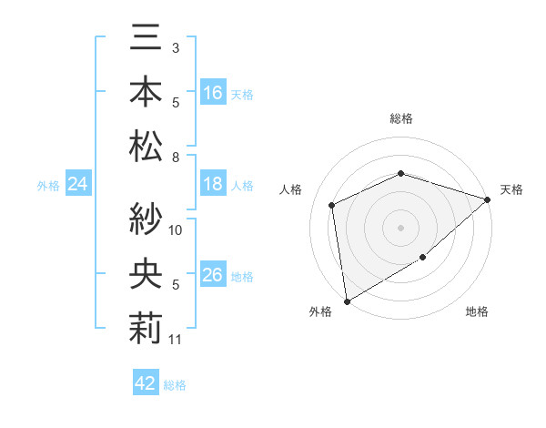 三本松 紗央莉さんを姓名の画数から五運を鑑定