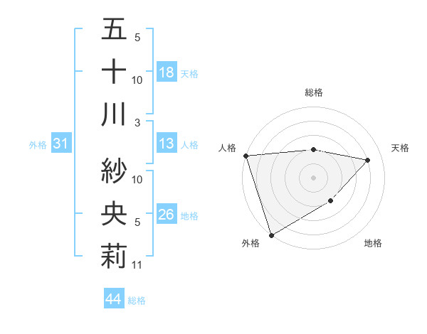 五十川 紗央莉さんの外格は31画の5点!